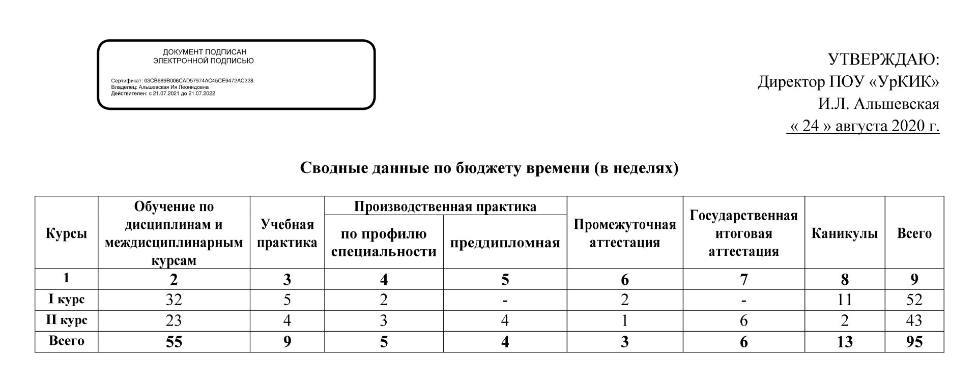 КАЛЕНДАРНЫЙ УЧЕБНЫЙ ПЛАН 43.02.02