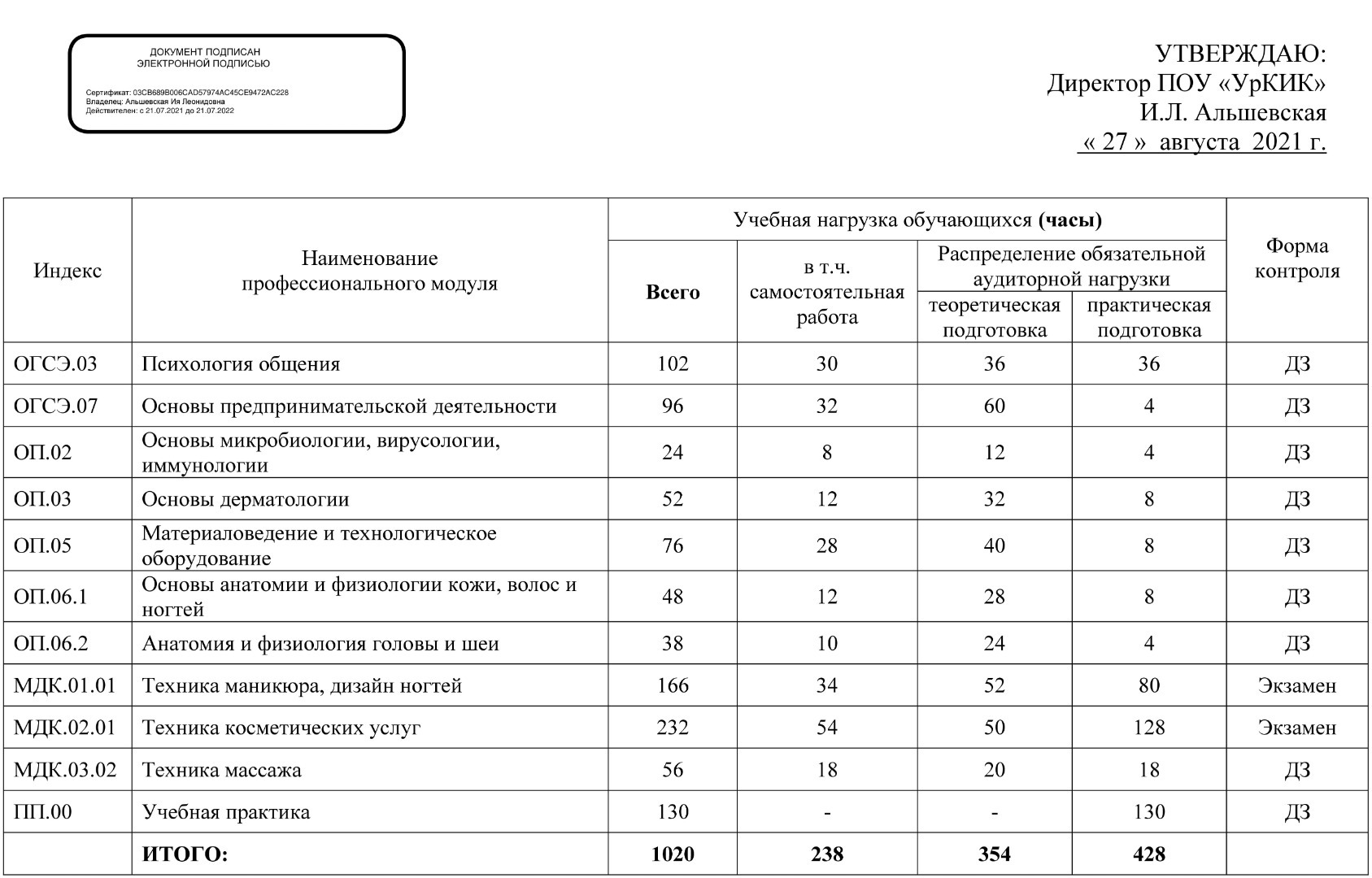 ПЛАН УЧЕБНОГО ПРОЦЕССА