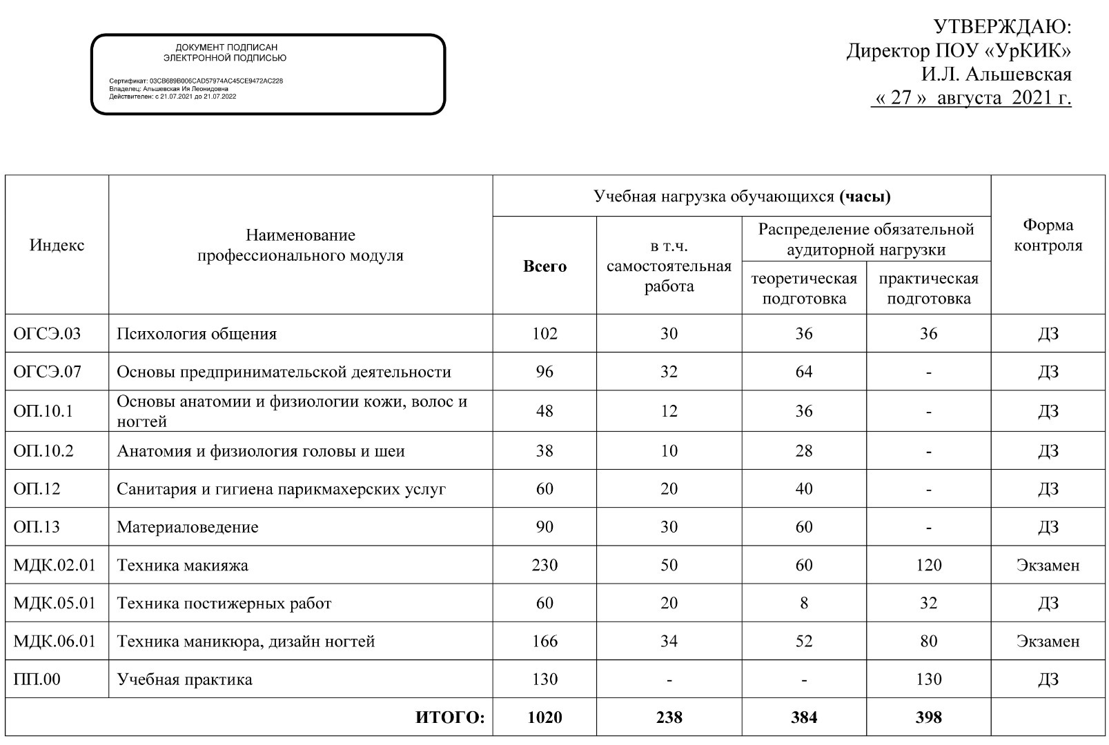 ПЛАН УЧЕБНОГО ПРОЦЕССА